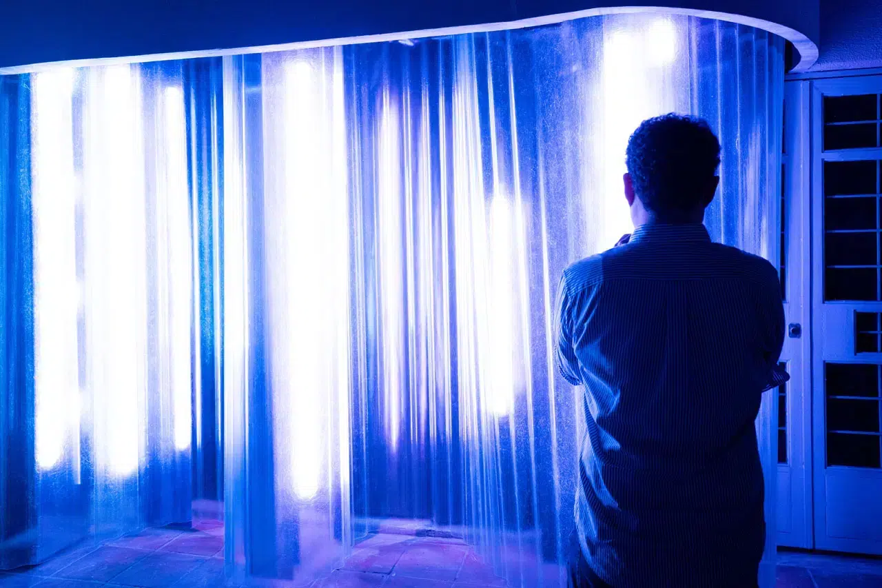 Proyecto Patio se desarrolló como un espacio que tiene como objetivo promover la interacción entre la comunidad de la industria de la iluminación: profesionales de la arquitectura, diseño y cualquier persona que esté interesada en explorar la importancia de la luz a través de distintas actividades lúdicas y educativas. En su primera edición, se presentó como una intervención lumínica compuesta por diferentes materialidades y patrones de luz que formaban una composición dinámica para lograr juegos de luz, reflejos y contraste.