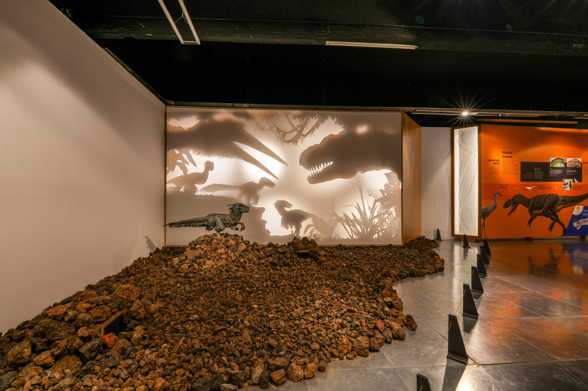 Dinosaurios entre Nosotros es una exposición temporal del Museo de las Ciencias en Ciudad Universitaria, organizada por el American Museum of Natural History en Nueva York. Esta exhibición muestra la conexión ininterrumpida que existe entre las aves modernas y los dinosaurios que dominaron el planeta. Junto con el equipo del museo, trabajamos en dos piezas lumínicas que revelaran la magnitud y la esencia de los dinosaurios de manera única. Las piezas consisten en juegos de sombras de seres prehistóricos, creando una experiencia visual cautivadora.